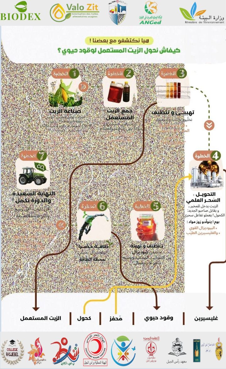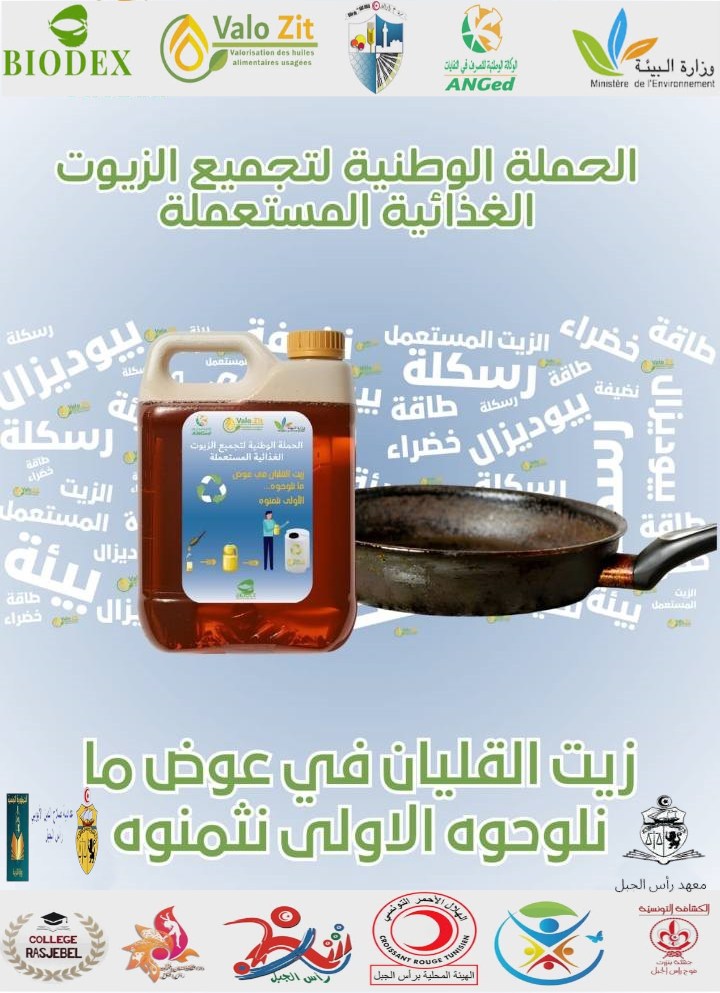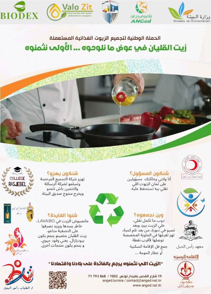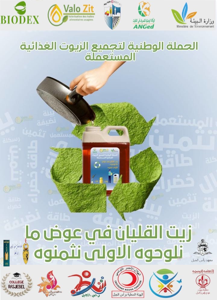 تعلم بلدية رأس الجبل انه تقرر تنظيم يوم تحسيسي لجمع الزيوت الغذائية المستعملة وتثمينها يوم السبت 28 فيفري 2026 على الساعة 11:00 صباحا بساحة الشهداء برأس الجبل وذلك في إطار تواصل تنفيذ المبادرة الوطنية والتي انطلقت سابقا من امام المدرسة الاعدادية صلاح الدين الايوبي برأس الجبل.